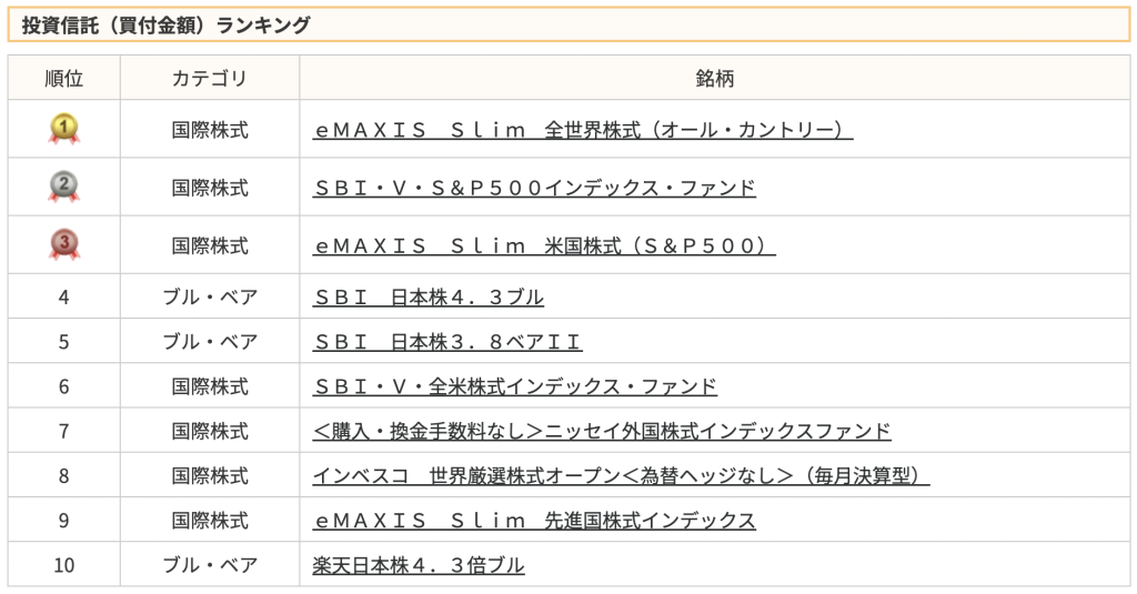 いずれも、ベスト3の投資信託が同じ顔ぶれであることに気づきました。