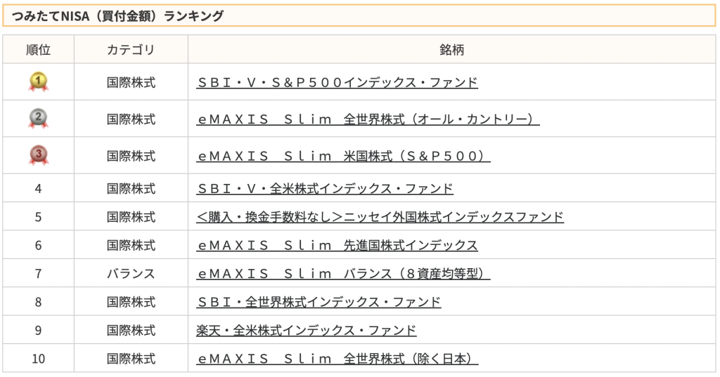新NISAが始まって少したった2024年の3月のランキングを2つ。