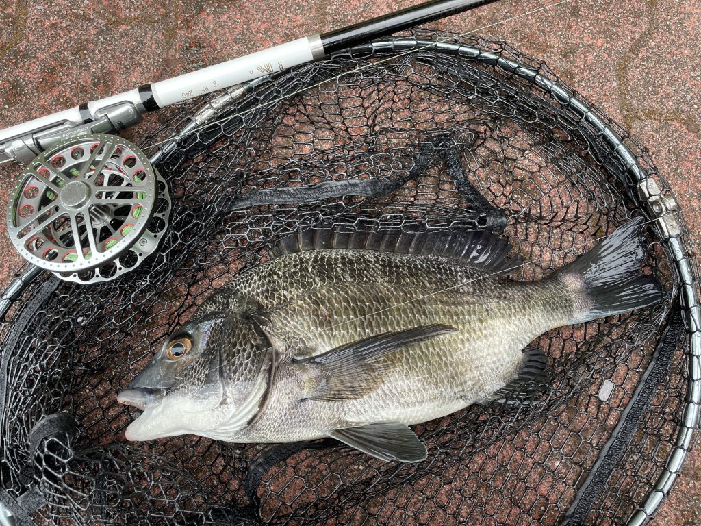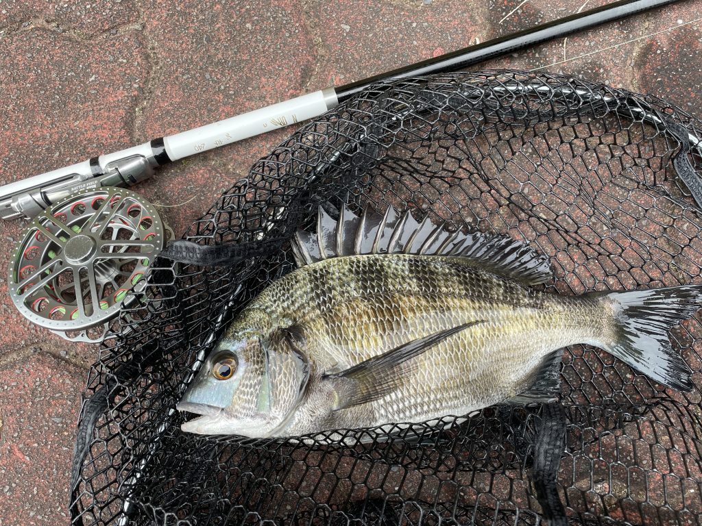 開始早々、ヘチ際でゴン!と来たのが35センチの元気なクロダイ。台風とゲリラ豪雨で死の河になってから実に3週間ぶりのやり取り。いやー、よく戻ってきてくれました。自然の回復力ってすごいです。